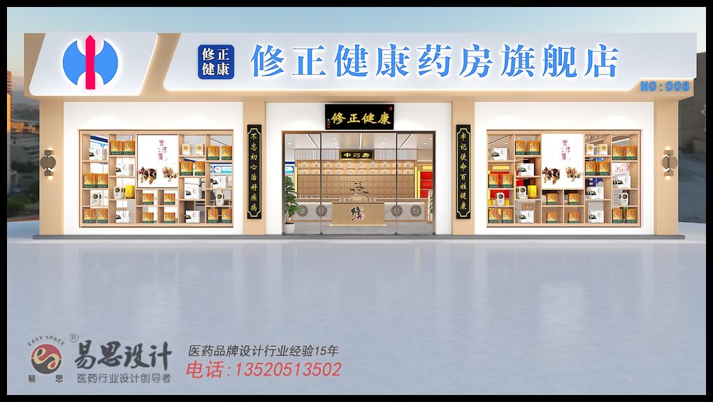 修正一个老品牌的药房,怎么融合新中式的风格,让年轻人更,更符合现在年轻人的消费理念,还要让老年人也喜欢!传承的老字号老品牌的延续!