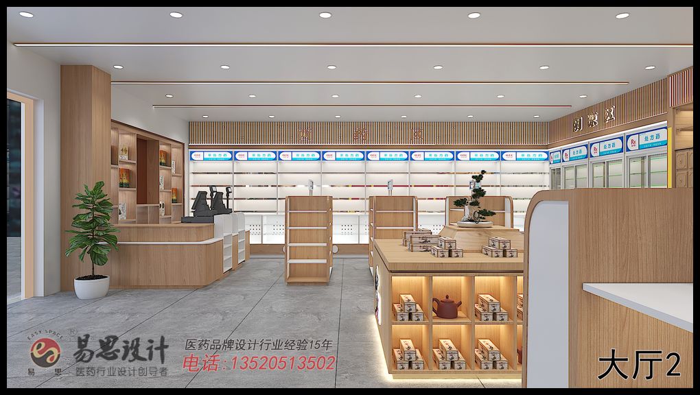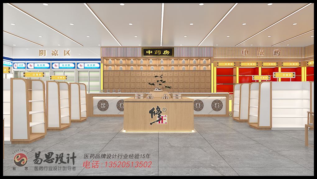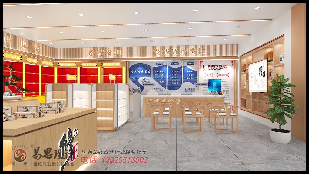 设计面积为160平方,药店结合慢病调理指导! 易思药店设计!